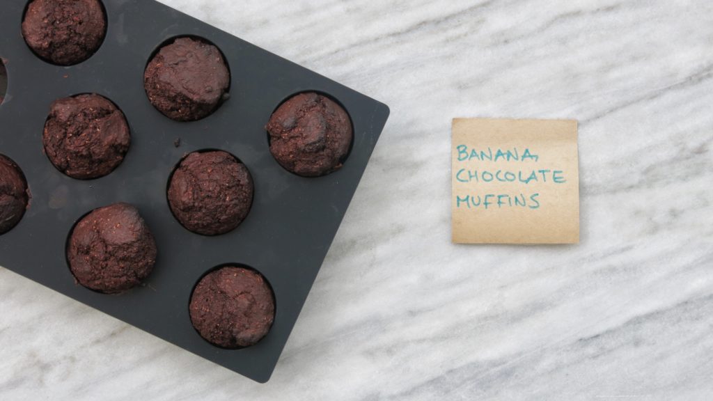 Preheat oven to 180°C. In a large bowl, combine the flour, cacao powder, baking powder and baking soda. In a separate bowl, combine the mashed banana, vanilla extract, almond milk, olive oil and maple syrup. Stir the wet ingredients into the dry ingredients until just combined. Don’t over mix or muffins will become rubbery. Spoon the muffin mixture into the prepared muffin tin. Cook in oven until a toothpick inserted in the center comes out clean. Enjoy and Bon Appétit!