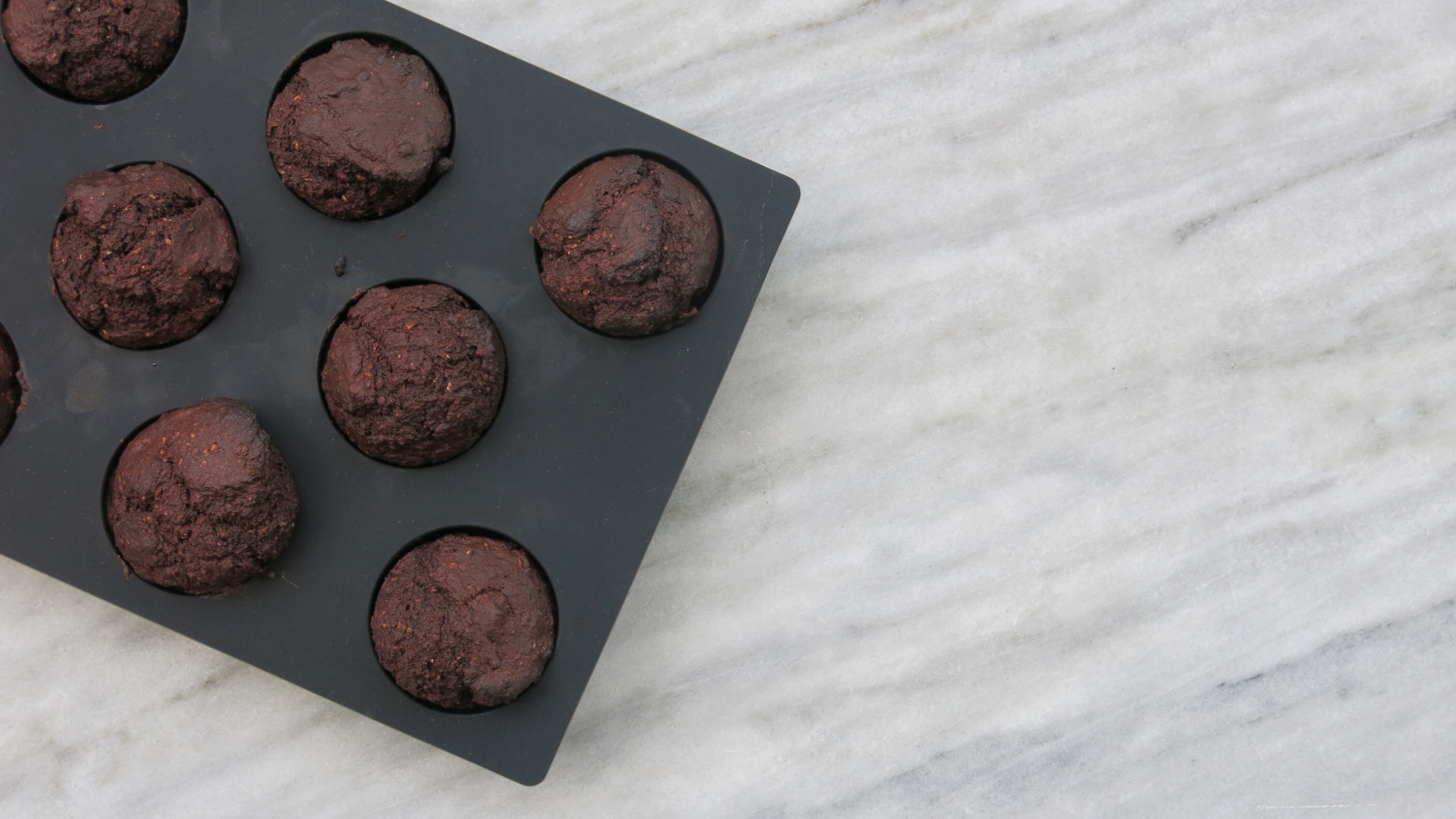 [one_half] WHAT YOU NEED ¾ cups flour ¼ cup cacao powder 1 teaspoon baking powder ½ teaspoon baking soda ½ teaspoon pure vanilla extract 1 ½ medium bananas ½ cup almon