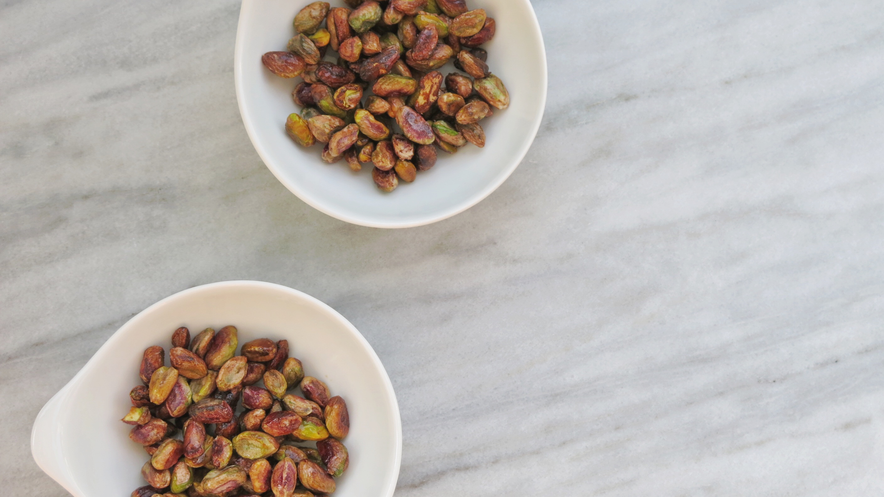 [one_half] WHAT YOU NEED 70 g raw pistachios 1 tablespoon honey [/one_half] [one_half_last] INSTRUCTIONS Mix the honey and the pistachios well. Bake for 7 minutes at 250°C (do not