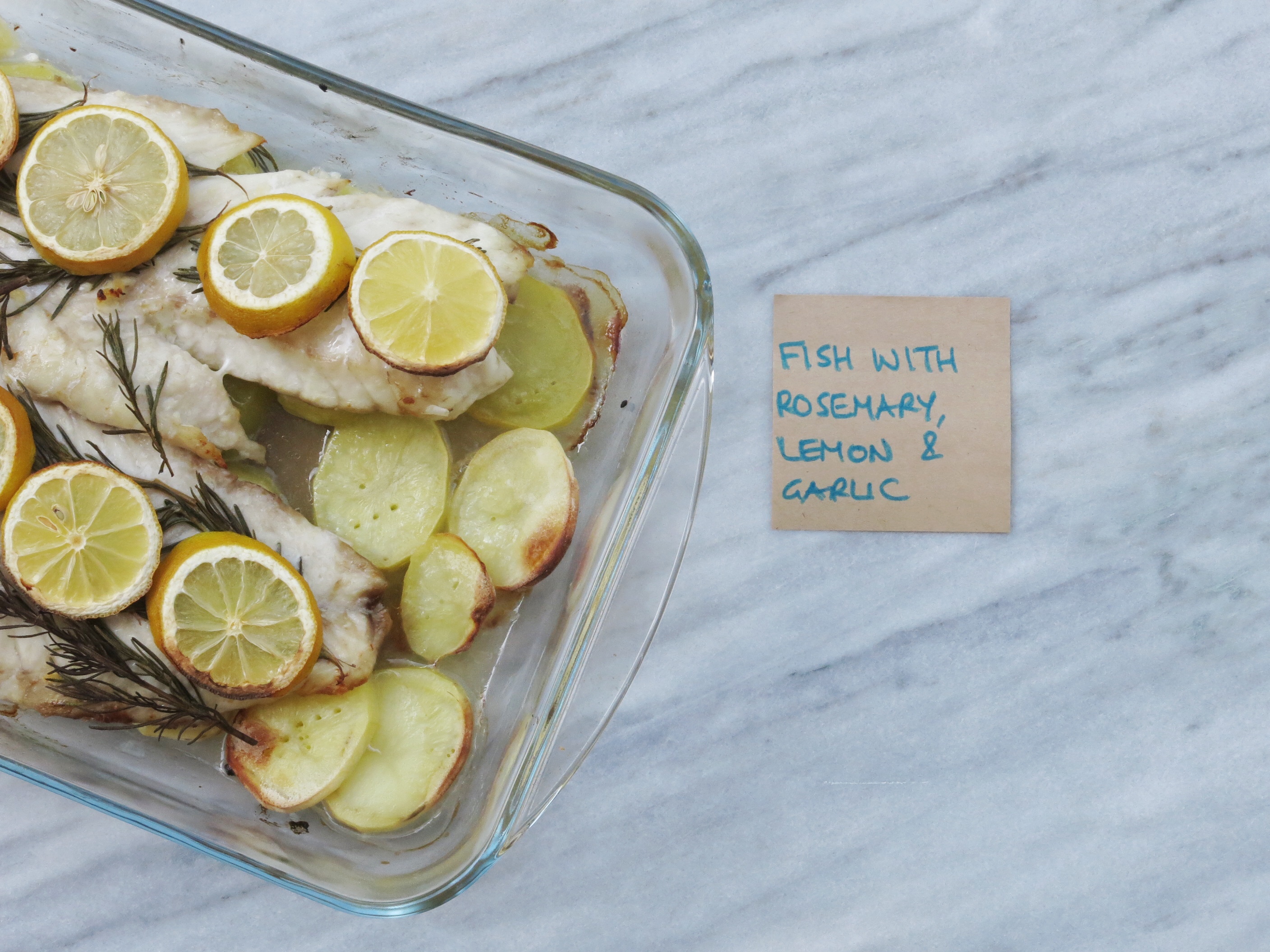 FISH WITH ROSEMARY, LEMON & GARLIC
